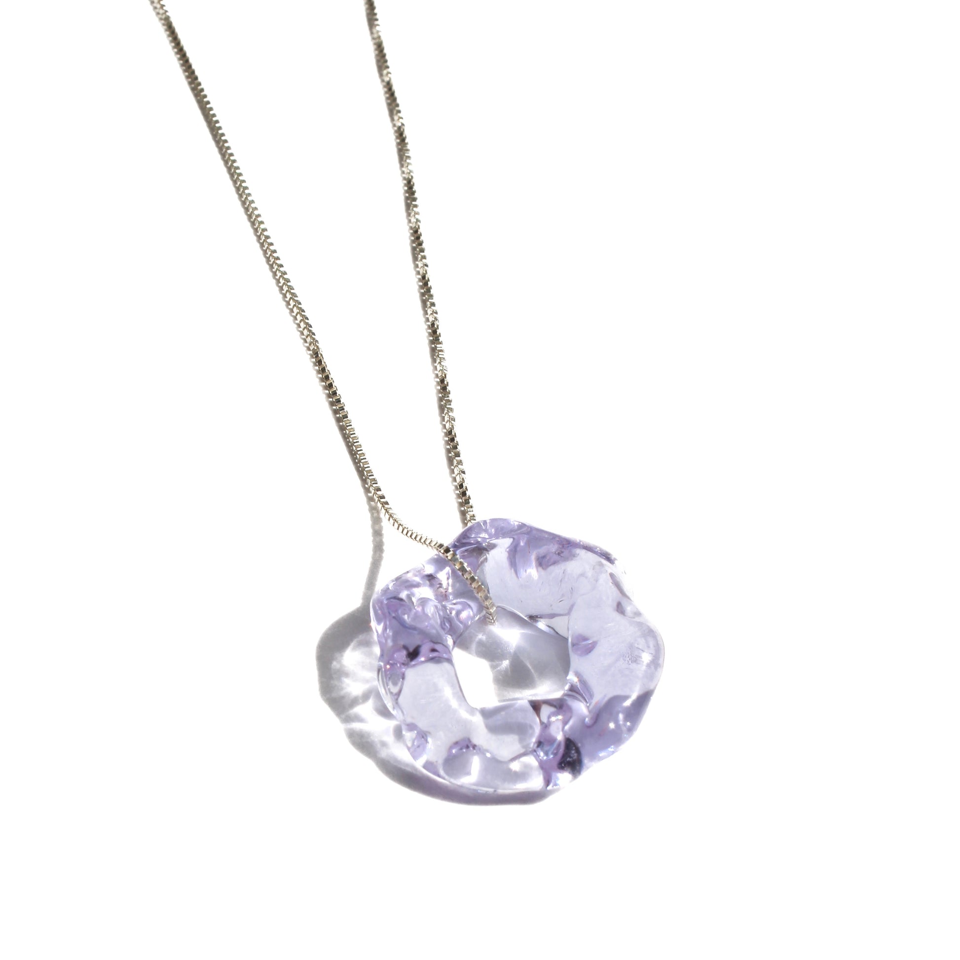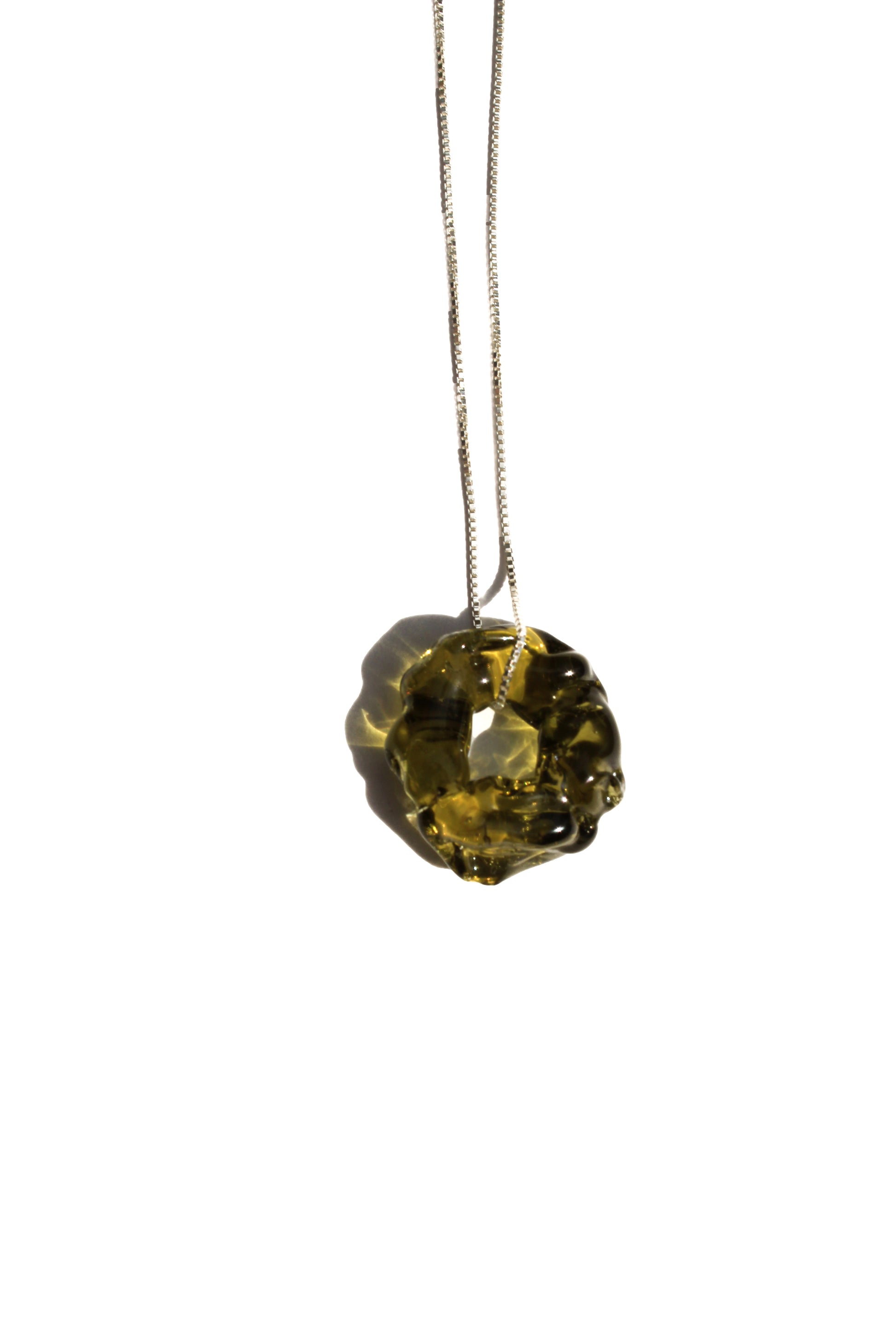 Dije en vidrio arrugado esculpido a mano con cadena de plata ley 925.