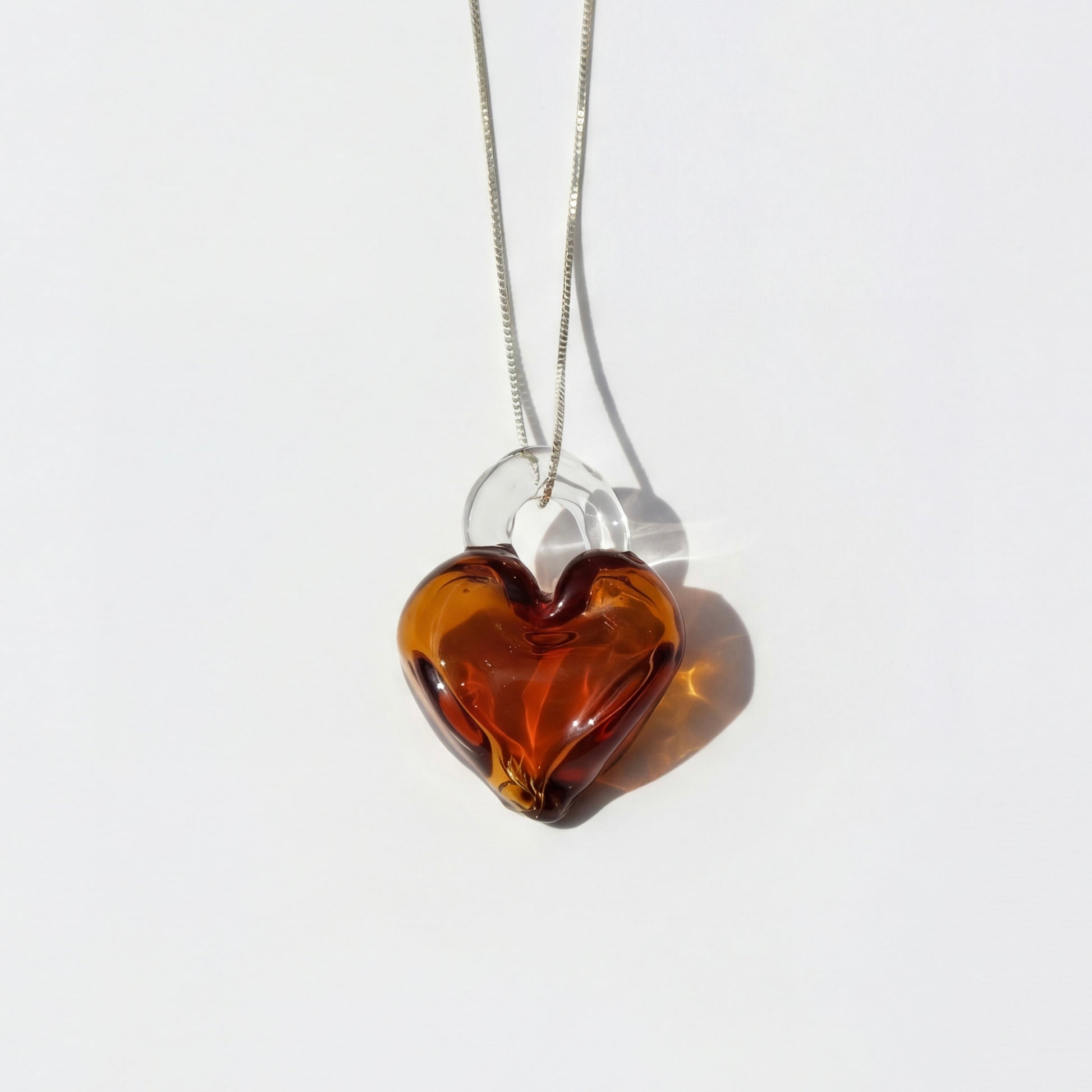 Cadena plata ley 925 con dije en vidrio en forma de corazón mini en vidrio soplado.