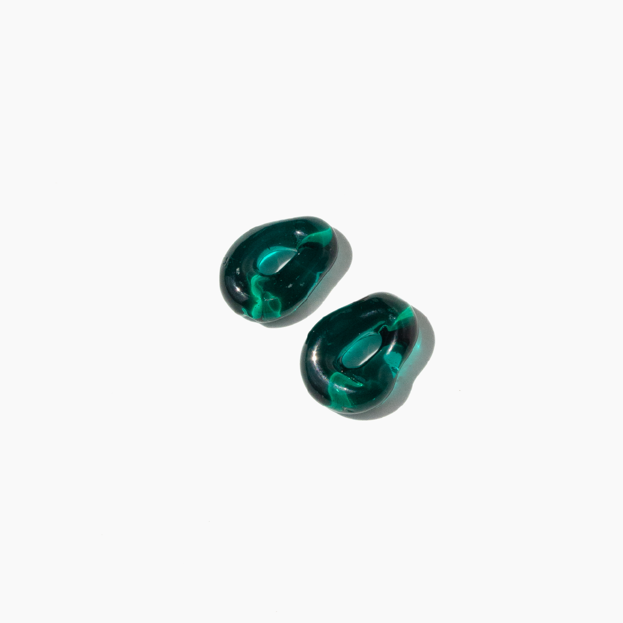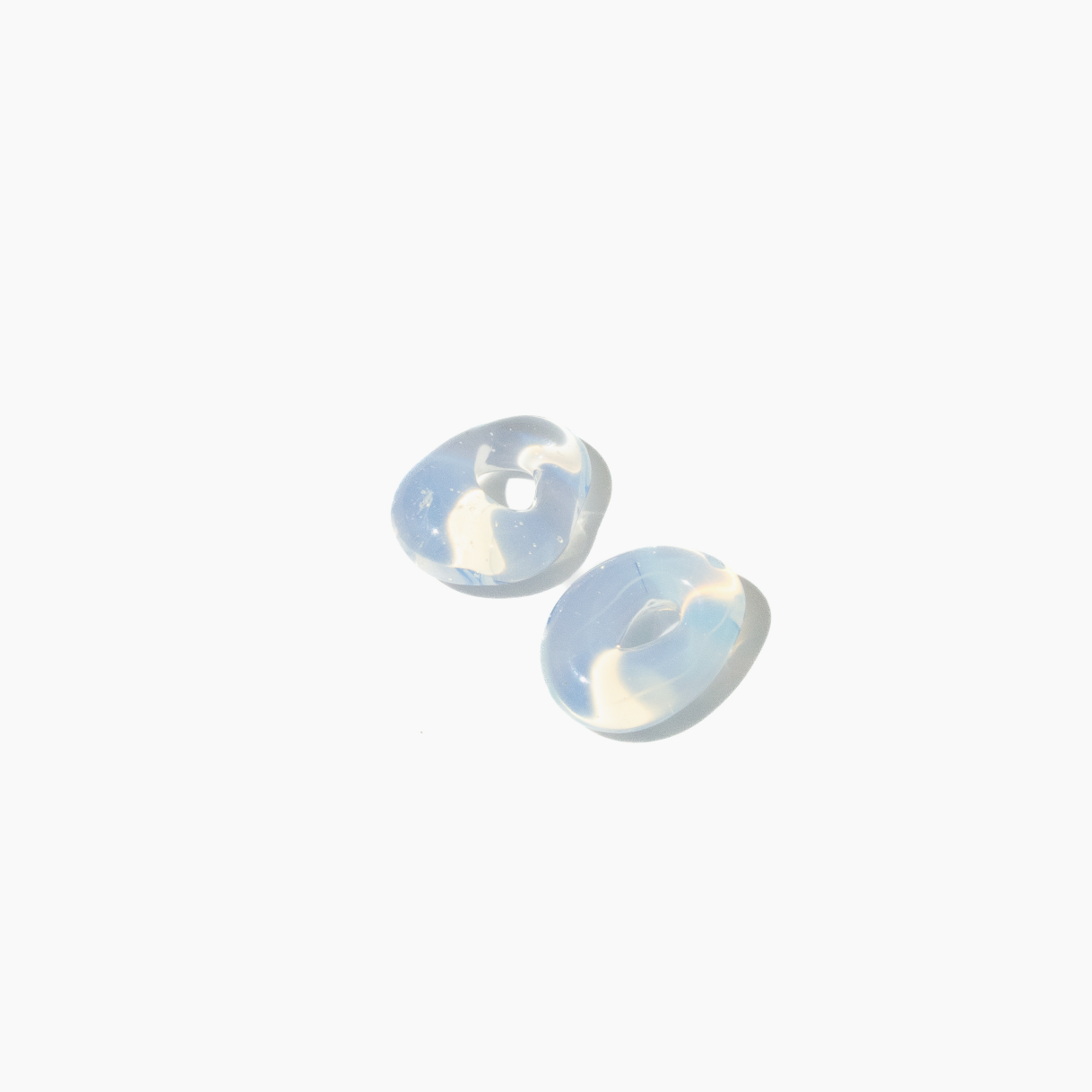 Dijes en vidrio con forma orgánica para insertar en candongas, argollas o cadenas.
