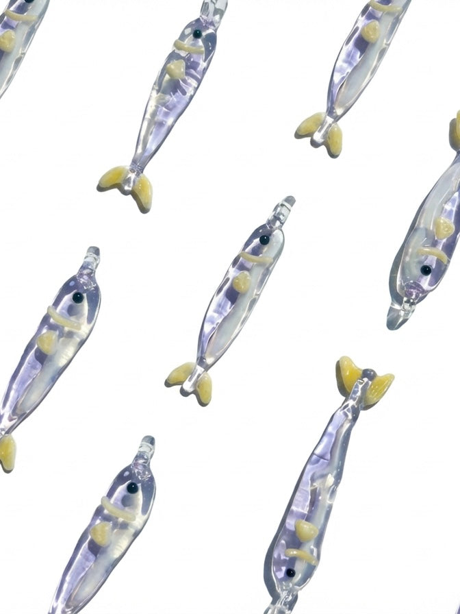 Dije en forma de sardina moldeado en vidrio