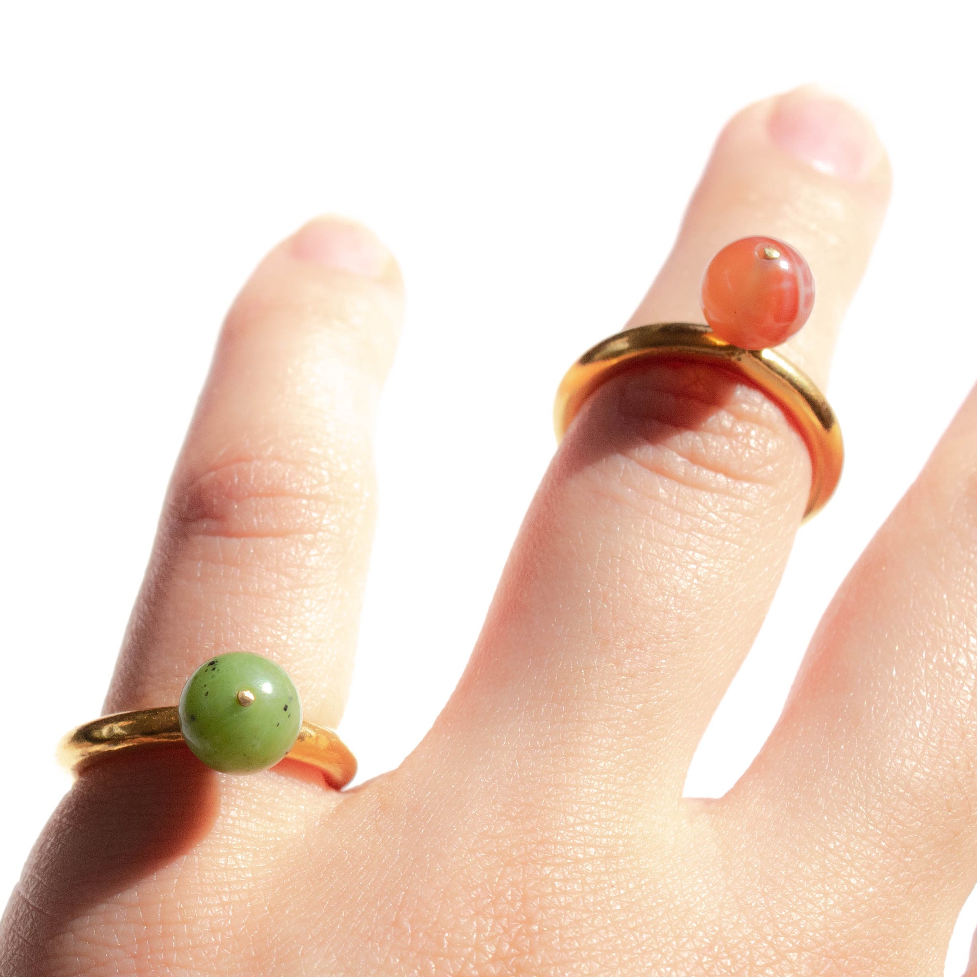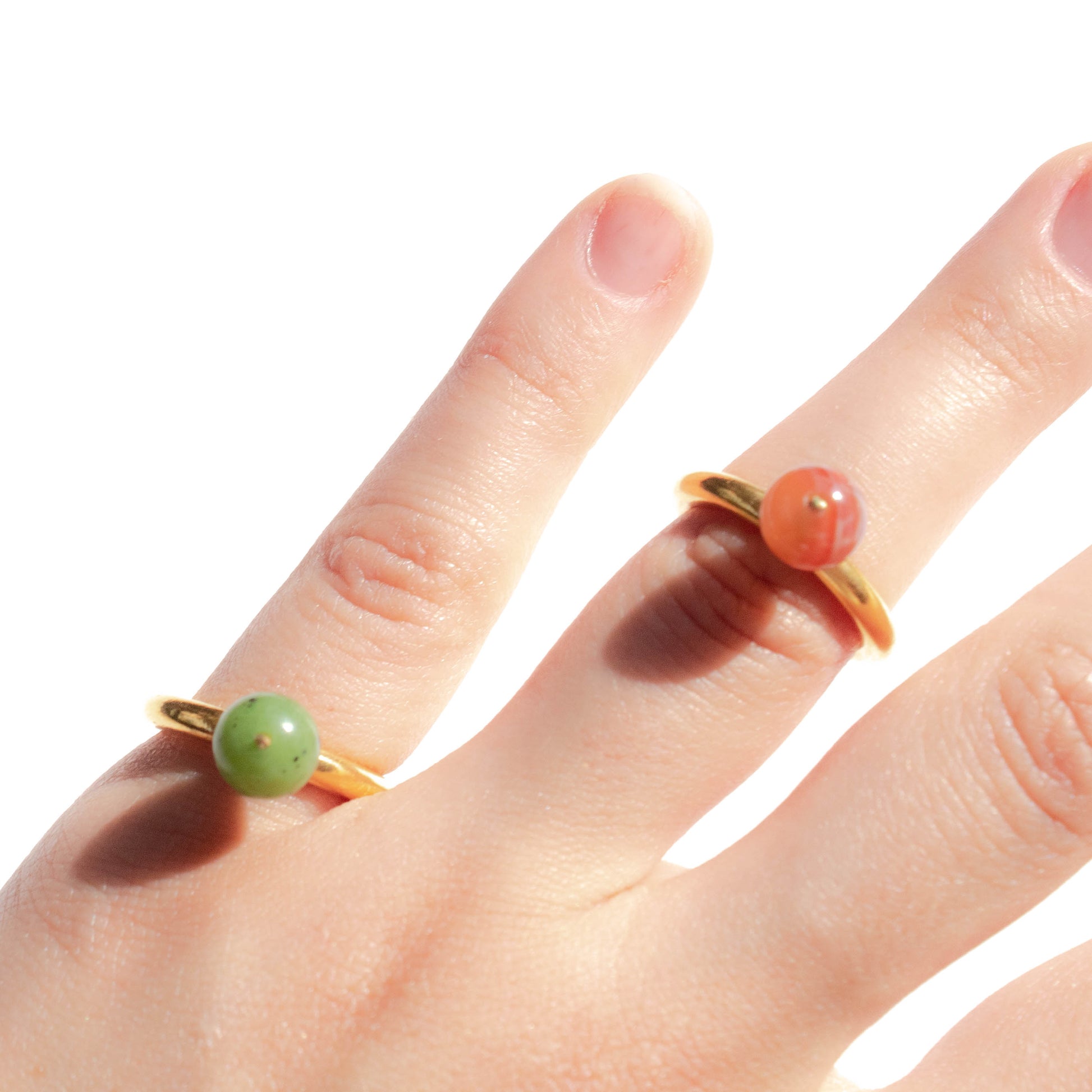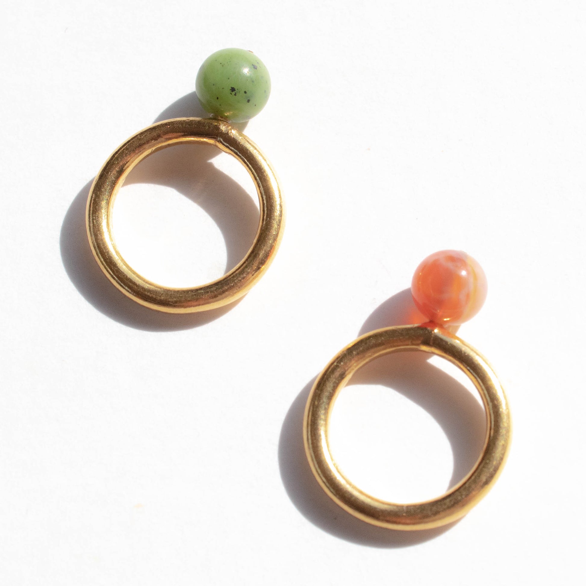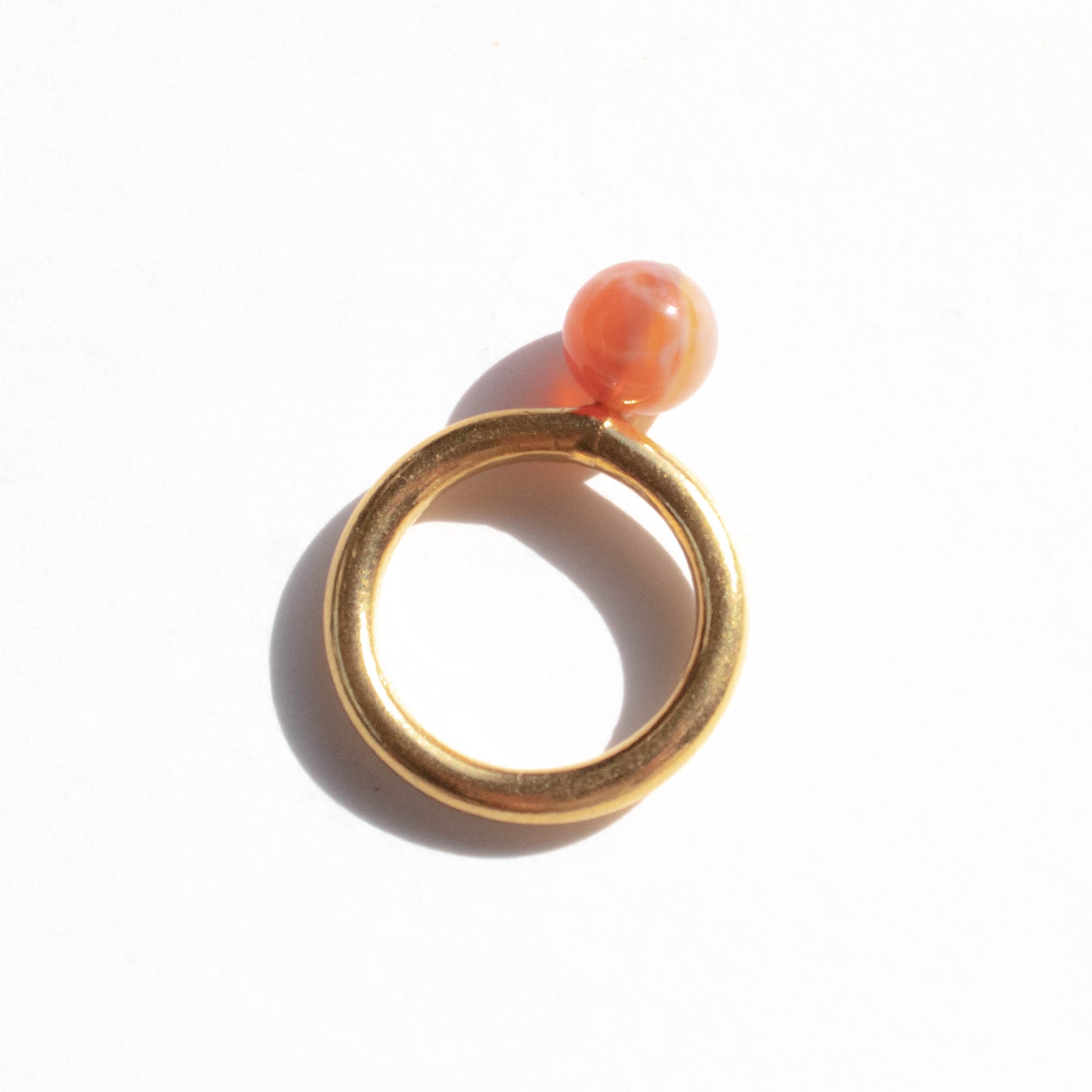 Anillo pequeño de hilo de bronce bañado en oro de 24k con dije de ónix rojo o jade